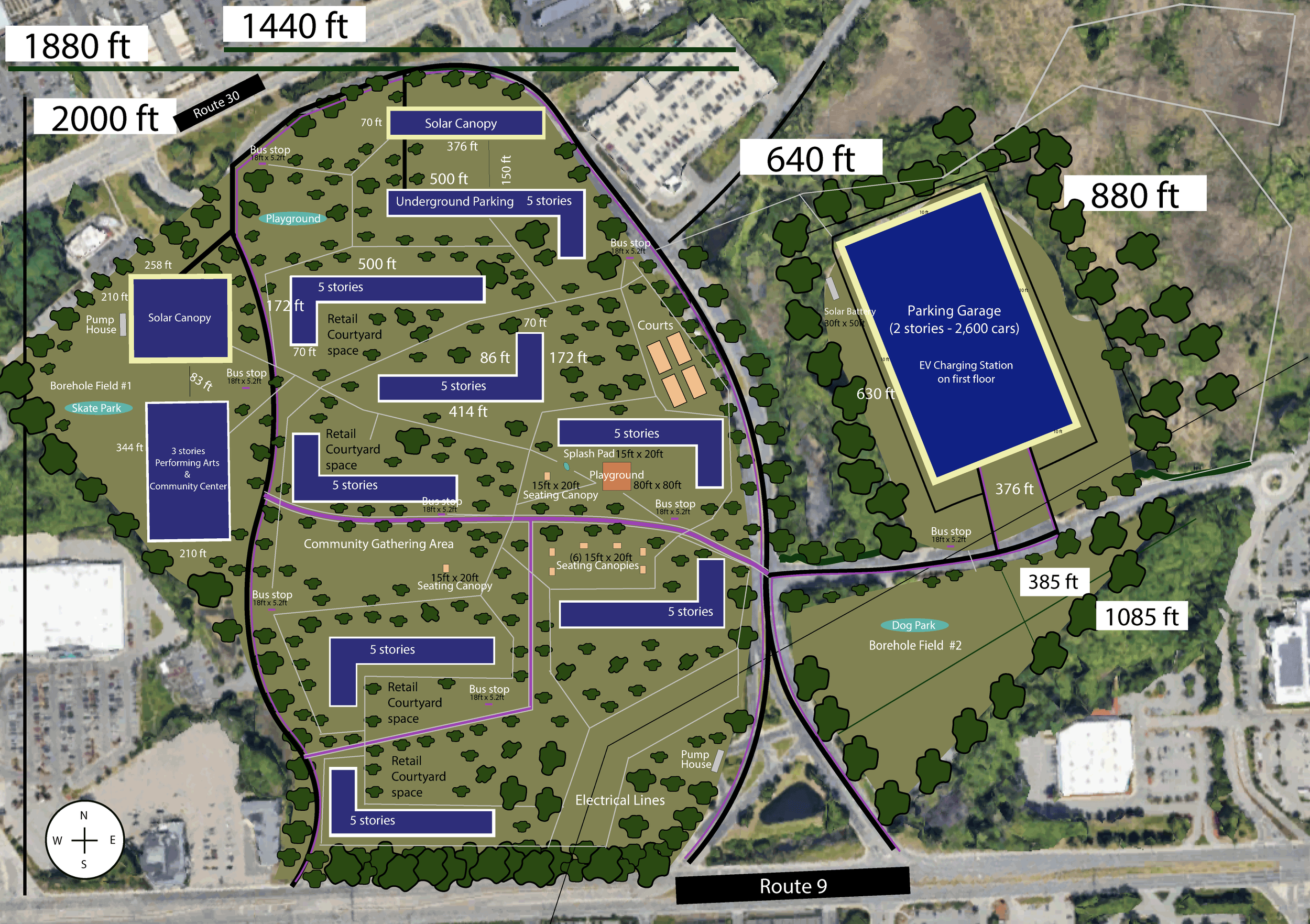 Click to enlarge this map, which includes geothermal borehole fields, solar canopies, and more. Credit: Justine Greenwood, Christa McAuliffe Center.